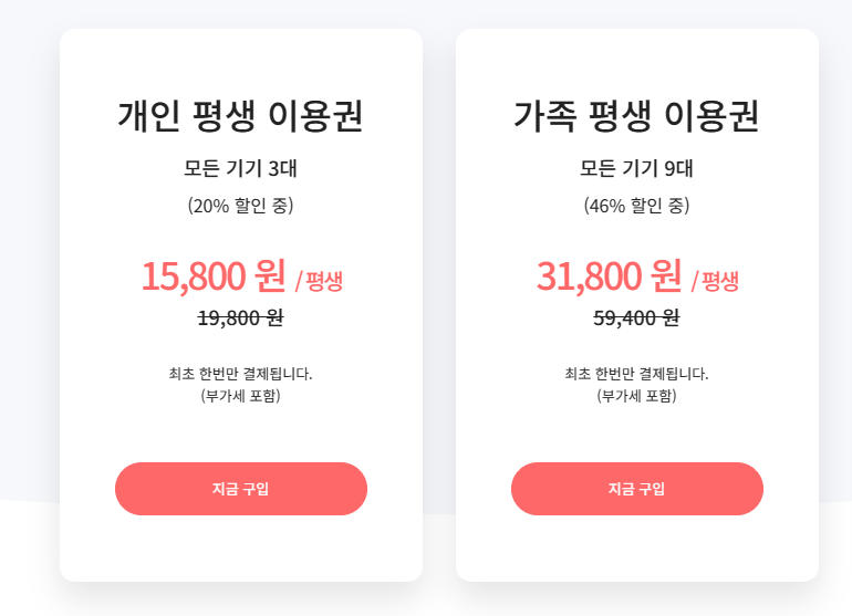 또한, 이런 저런 복잡해서 싫고 평생 이용하겠다 하시는 분들은 평생 이용권이 가능합니다.